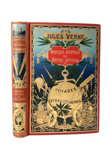 Jules VERNE. — Mirifiques aventures de Maître Antifer. Ill. par Roux. 12 grandes gravures en chromotypographie et deux cartes en couleurs. Paris, Bibliothèque d'éducation et de récréation, J. Hetzel. S.D. (Circa 1898). Grand in-8 double.