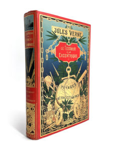 Jules VERNE. — Le testament d'un excentrique. Ill. par Roux, 35 vues des Etats-Unis d'Amérique, une carte. Paris, Bibliothèque d'éducation et de récréation, J. Hetzel. S.D. (1899). Grand in. 8 double.