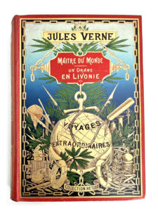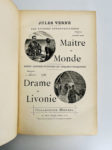 Jules VERNE. — Maître du Monde / Un Drame en Livonie. Ill. par Roux (Maître du Monde), Benett (Un drame en Livonie), 12 grandes chromolithographies. Paris, Bibliothèque d'éducation et de récréation, J. Hetzel. S.D. (1904). Grand in. 8 double.