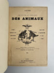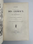Ill. par Roux. Paris, Collection Hetzel, Hachette. 1919. Grand in. 8 double. Reliures éditeur en plein chagrin noir ornées de plaques spéciales réalisées d'après les dessins de Grandville pour la couverture du tome II. Le dessin original pour la plaque apposée sur les premiers plats, montrant en partie une grenouille et un oiseau se saluant mutuellement, est reproduit par Sophie Malavieille dans «Reliures et cartonnages d'éditeur en France au XIXe siècle, p. 125». Fers animaliers aux angles. Dos lisses ornés de fers animaliers. Tranches supérieures dorées.