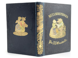 GRANVILLE, Jean-Ignace-Isidore ; Blanc, Charles (notice). — Les métamorphoses du jour. 70 planches Hors-Texte en couleurs par Grandville. Paris, Gustave Havard. 1854. XXVIII + 283pp. Grand in-8. Gardes d'origine.
