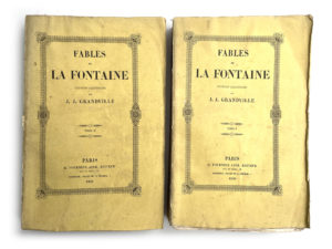 GRANVILLE, Jean-Ignace-Isidore. La Fontaine, Jean de. — Fables. Edition en deux volumes illustrée par Grandville. Paris, H. Fournier ainé ; Perrotin. 1838. XVIII + 292pp. ; 312pp.