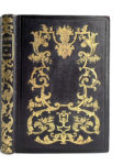 Gardes d'origine. Reliure en plein chagrin violet foncé de Boutigny (signée en queue et étiquette au dos de la page de garde) avec des plats richement ornés d'un masque grotesque et de guirlandes de fleurs. Dos lisse orné à la Boutigny. Tranches dorées.