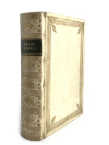 Reliure en plein vélin d'époque. Avec encadrements dorés sur les plats et dos richement orné avec pièce de titre maroquin. Tranches dorées. Ex-dono manuscrit de 1843.