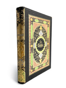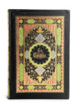 Gardes d'origine. Cartonnage éditeur en percaline noir avec un premier plat orné d'une grande plaque à décor arabisant à motifs floraux et textes arabes dans les cartouches. Sur le second, jolie composition dorée représentant Shéhérazade et sa sœur au pied du lit du sultan : celle-ci est une copie de la plaque de Mugnerot pour la reliure d'éditeur des Mille et une nuits de 1840. Imp. Lenègre. Tranches dorées.
