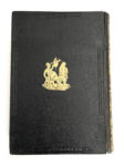 Cartonnage éditeur en percaline noire mosaïquée représentant au premier plat des armes sur un blason tenu par un cheval et un âne, surmonté d'un heaume et, en arrière, sont croisés des armes et les ailes d'un moulin. Le second plat montre Don Quichotte et Sancho en pleine discussion. Dos richement orné avec la tête de Sancho.