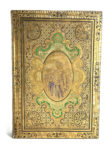 Reliure éditeur en plein chagrin noir entièrement recouvert d'un décor doré. Plats par Haarhaus ornés de fers spéciaux entièrement recouverts d'un décor à fond doré et mosaïqué vert et bleu, médaillon central orné avec un personnage féminin au centre.