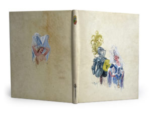 Reliure en plein vélin à dos lisse aux plats et aux dos décorés d'aquarelles originales de Maurice Toussaint. Tranches dorées.