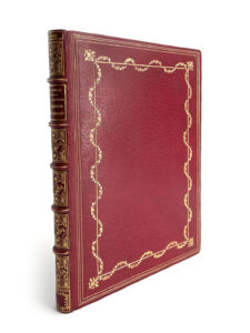 Reliure en plein maroquin rouge de Silvestre avec filets et guirlande florale sur les plats. Dos à cinq nerfs richement orné. Doré en tête. Couvertures conservées.