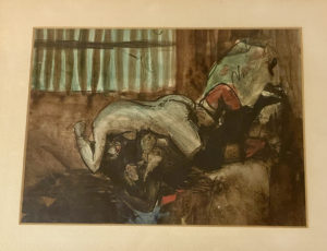 ARNOUX Guy — Aquarelle originale non signé représentant deux femmes, presque nues, se frappant.