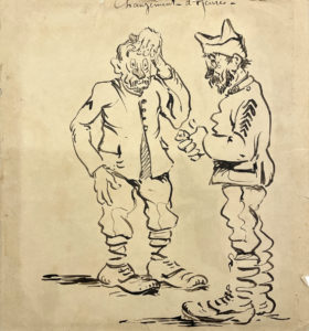BOFA Gus — Dessin à l'encre de Chine représentant deux soldats en conversation. Non signé, 19 x 24 cm, petites déchirures en haut.