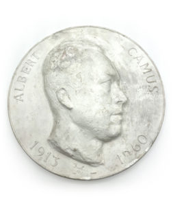 (CAMUS Albert) — Plâtre original de la sculpture du médaillon d'Albert CAMUS par le sculpteur Marcel DAMBOISE. Amis depuis 1934, c'est à Alger où le sculpteur expose ses oeuvres à la Villa Abd-el-Tif qu'il rencontre le critique d'art de l'Echo...
