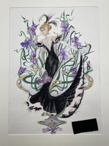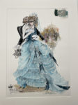 – Une gouache avec échantillon épinglé pour l'opérette autrichienne «Die lustige Witwe (La Veuve joyeuse)» de Franz Lehàr représentant Hanna Glawari, la veuve joyeuse.