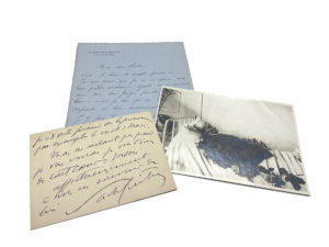 — Jointe une lettre autographe signée de Marie-Jeanne Courteline à Sacha GUITRY lui confiant ces carnets et la carte autographe signée de Guitry la remerciant, également une photo en retirage de Courteline sur son lit de mort.