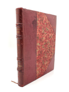 Reliure in-4 demi chagrin vieux rouge à coins, dos à 8 nerfs, de faux nerfs à froid se prolongent sur les plats, traces de frottements et taches sur le dos et les plats, lettrines or et date en pied, couvertures et dos conservés, intérieur frais.