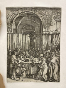 DURER Albrecht — Ensemble de 15 gravures d'après Dürer représentant des scènes bibliques, plus particulièrement les scènes de la vie de la Vierge, chacune monogrammée. L'une d'entre elles, représentant Joachim et l'Ange, est sous cadre, au...