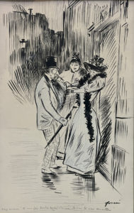 FORAIN Jean-Louis — Dessin original signé en coin inférieur droit représentant deux prostitués attrapant un homme au chapeau haut de forme et légendé «Vieux cochon !