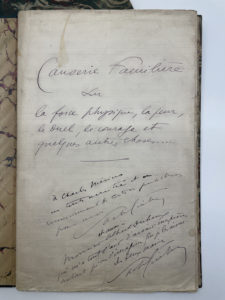 Probablement le texte d'une de ses causeries qu'il donnait au théâtre et dans laquelle il fait intervenir Colette, Madame Simone, Félix Galipaux, et finit par Sarah Bernhardt. En feuilles in-4, sous chemise demi toile vert Empire, dos lisse, lettrines or à la chinoise, chemise.