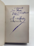 — Jointe une lettre autographe signée dans laquelle il indique avoir raté une répétition d'Antigone à cause d'une crise de goutte puis évoque sa candidature à l'Académie française. Deux pages in-12. Reliure in-8 à la bradel demi maroquin crème à coins, dos lisse et insolé, orné de dorures, lettrines or et date en pied, tête dorée, couvertures conservées, reliure signée Paul Vié, ex-libris de Mme Bartet.