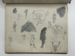 En marge et sur les dernières pages du cahier de nombreux croquis. 85 ff. reliés in-8 à la bradel, demi percaline rouge, couvertures conservées, intérieur frais. Jointe une page de notes : sur «Praxitèle, sculpteur tout puissant» une liste de mots à ne pas employer, d'autres ailleurs, d'autres «possibles vaguement» et une autre page, non de la main de Louys, sur Malby.