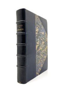 Montées sur onglet deux pages in-8 intitulées «Conversation avec une jeune fille née en 1886» et «Seconde conversation ave une jeune fille née en 1886». Sur la page de garde un mot autographe signé de Claude Farrère et daté de 1919 annonçant qu'en cas de vente de l'ouvrage ces deux pages doivent être extraites et que leur publication est interdite. Un second daté de 1944 annonce avoir changé d'avis et «autorise la publication ultérieure de ces deux délicats chefs d'œuvre, en éditions de luxe». (mais il n'y en a pas de publication à notre connaissance). Jointes deux pages de notes in-12, l'une sur une courtisane médiévale, l'autre sur une antique, une lettre autographe signée à une maîtresse (3pages in-12), et un amusant mot manuscrit daté «Sextidi matin» et annonçant la publication dans la Revue des Deux Mondes d'un texte de Louis Racine dont les 12 premiers vers suivent, et qui est en fait un poème de Louys qui ne fut pas publié. Ensemble présenté dans une reliure in-8 demi maroquin bleu à coins, dos à 5 nerfs, lettrines or et date en pied, tête dorée, couvertures conservées, reliure signée David.