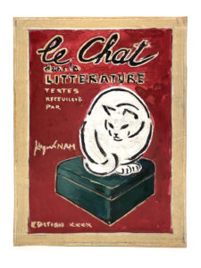 NAM Jacques — Projet de maquette pour la couverture d'un album intitulé Le chat dans la littérature, textes recueillis par Jacques NAM. Gouache signée, 14 x 21 cm.
