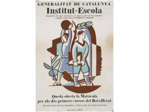 1932. (REPUBLICA). GENERALITAT DE CATALUNYA. INSTITUT ESCOLA. Barcelona: Imp. Altés, 1932. Litografia. 69x49 cm. B-. Pequenas faltas en el margen superior, papel levemente oscurecido en el margen derecho y sutiles restos de antigua afectación de...