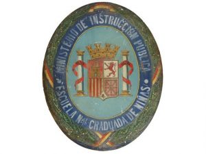 1935 ca. (REPUBLICA ESPANOLA). MINISTERIO DE INSTRUCCION PUBLICA. ESCUELA Nal. GRADUADA DE NINAS. Barcelona: imp. Elzaviriana. Placa de latón. 58x46 cm.