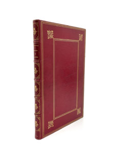 Reliure in-8 plein maroquin à long grain rouge, plat à encadrement de filet or et fleurons, dos à 5 nerfs orné de dorures, date en pied, trace de frottement sur le nerfs, contre-plats à la roulette, trois tranches dorées, reliure signée Smeers.