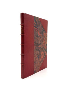 Complet du frontispice et des vignettes, chacun en deux états. Contre-collés sur les pages de gardes quatre dessins originaux de Roubille ayant servi à l'illustration de ce livre : le premier p57 pour Le Sphinx, puis p64 pour Les égarés, p81 pour Le roi s'amuse et enfin p94 pour Lettre à Zola. Ensemble relié in-8 demi maroquin rouge à coins, dos à 5 nerfs, lettrines or, tête dorée, couvertures conservées.