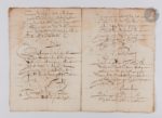 [RHÔNE]. [CHAZAY D’AZERGUES]. Ancienne seigneurie de Gage, 20 kilomètres au nord-ouest de la colline de la Fourvière Inventaire des papiers de feu demoyselle Marguerite Bullioud, dame de Gage [Gaige] En français, document sur papier (10 ff.) France, 1573 [reprenant les éléments du contrat de mariage entre Antoine Bullioud et Marguerite de Bourg de 1532, parents de Marguerite Bullioud] Dimensions : 200 x 285 mm Marguerite est l’épouse d’Antoine Bullioud, trésorier général de Bretagne, avec lequel elle demeure 8, rue Juiverie, où à la demande du couple, Philibert de l’Orme a construit, en 1536, sa célèbre galerie. Dame du château de Gage (situé à Chazay-d’Azergues et chanté par les poètes), Marguerite de Bourg, devenue veuve en 1546, est surtout connue comme égérie de l’intelligentsia humaniste lyonnaise du milieu du XVIe siècle : autour d’elle gravitent des poètes, Maurice Scève, Pontus de Tyard, des éditeurs-libraires comme le célèbre Guillaume Rouville (Rouillé), mais aussi, car elle maîtrise parfaitement la langue des Médicis, des Italiens tel Lucantonio Ridolfi, marchand florentin et poète à ses heures. Référence Bibliothèque municipale de Lyon.