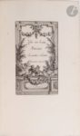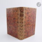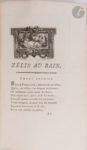 DORAT (Claude-Joseph) - PEZAY (Alexandre-Frédéric-Jacques Masson). Collection de pièces en vers… Ornées d'Estampes, de Vignettes & de Culs-de-lampe en taille douce, exécutées par les meilleurs Graveurs. Genève, Paris : Jorry, Bauche, 1766-1767. — In-8, veau porphyre, triple filet doré en encadrement sur les plats, dos lisse orné, tranches marbrées (reliure de l'époque). Édition collective rare, réunissant, sous un titre général spécialement imprimé, les pièces suivantes présentées avec leur titre propre et leur pagination particulière : - PEZAY. Zelis au bain. Poëme En quatre Chants. Genève, s.d. [Paris : Jorry, 1766]. Seconde édition illustrée, en 36 pages, ornée comme la première de 1763 d'un titre gravé, de quatre planches, de quatre têtes de chapitre et de quatre culs-de-lampe d'après Eisen. - DORAT. Lettre de Barnevelt dans sa prison, à Truman son ami, précédée d'une lettre de l'auteur. Quatrième édition. Paris : Bauche, 1766. Nouvelle édition, illustrée d'une planche, d'une vignette et d'un cul-de-lampe d'après Eisen. - DORAT. Lettre de Zeïla, jeune sauvage, esclave à Constantinople, à Valvour, officier françois ; précédée d'une lettre à Madame de C**. Troisième édition. Genève, Paris, 1766. Illustrée d'une planche, d'une vignette et d'un cul-de-lampe d'après Eisen. - DORAT. Réponse de Valcour à Zélia, précédée d'une lettre de l'auteur à une femme qu'il ne connoit pas. Paris : imprimerie de Sébastien Jorry, 1766. Édition originale illustrée d'une planche, d'une vignette et d'un cul-de-lampe d'après Eisen. - DORAT. Lettre de Valcour, à son père, pour servir de suite et de fin au roman de Zeila ; Précédée d'une Apologie de l'Heroide, en réponse à la lettre d'un anonyme à M. Diderot. Paris : imprimerie de Sébastien Jorry, 1767. Édition originale illustrée d'une planche, d'une vignette et d'un cul-de-lampe d'après Eisen. - DORAT. Lettre de Julie, fille d'Auguste, à Ovide. Genève, Paris : Bauche, 1766. Nouvelle édition illustrée d'une vignette et d'un cul-de-lampe d'après Eisen. - DORAT. Lettre d'Ovide à Julie, Précédée d'une Lettre en Prose. A M. Diderot. S.l., 1767. Édition originale illustrée d''une planche, d'une vignette et d'un cul-de-lampe d'après Eisen. EXEMPLAIRE SUR GRAND PAPIER, en reliure de l'époque et très bien conservé. Provenance : Prudhomme l'aîné, avec ex-libris.