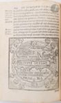 MACROBE. In Somnium Scipionis, Lib. II. Saturnaliorum. Lib. VII. Venise : Giovanni Griffio, 1574. — In-8, parchemin souple, dos à nerfs, tranches mouchetées (reliure de l'époque). Nouvelle édition faite sur la recension de J. Camerarius, publiée pour la première fois à Bâle en 1535. Elle regroupe les deux principaux textes du philosophe néoplatonicien Macrobe, à savoir ses commentaires sur le « Songe de Scipion » de Cicéron et « Les Saturnales ». L'édition est illustrée de sept figures gravées sur bois dans le texte, dont celle de la carte du monde. Bon exemplaire en reliure de l'époque. Parchemin taché, manque à un nerf. Déchirure au dernier feuillet blanc. Rousseurs éparses. Provenance : John Wyndham Bruce, avec ex-libris.