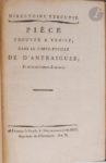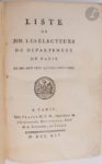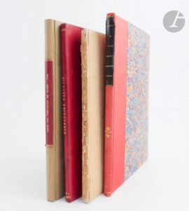 [RÉVOLUTION FRANÇAISE]. Ensemble de 12 plaquettes révolutionnaires reliées en 4 volumes in-8. Comprend : - CONVENTION NATIONALE. Ensemble de deux brochures : BOISSY D'ANGLAS. Discours préliminaire au projet de Constitution pour la République française, prononcé par Boissy-d'Anglas, au nom de la commission des onze, Dans la séance du 5 messidor, an 3. Paris : Imprimerie Nationale, Messidor an III [1795]. — ROBESPIERRE (Maximilien). Rapport fait au nom du Comité de Salut public, Par Maximilien Robespierre, Sur les Rapports des idées religieuses & morales avec les principes républicains, & sur les fêtes nationales. Séance du 18 floréal, l'an second de la République française une & indivisible. Paris : Imprimerie Nationale, s.d. 2 brochures en un volume in-8, cartonnage papier beige à la bradel, tranches bleues (cartonnage du XIXe siècle). Le Rapport de Robespierre est suivi du « Plan de la fête de l'Être Suprême » par David. - Liste de MM. Les électeurs du département de Paris. De mil sept cent quatre-vingt-onze. Paris : Prault D. S. M., 1791. — In-8, demi-toile verte à la bradel, dos lisse, non rogné (Bonneau). Dos passé. Provenance : Ogden Codman, avec ex-libris. - Relation Du Voyage des cent trente-deux Nantais, envoyés à Paris par le Comité révolutionnaire de Nantes. S.l., 1794. In-8, demi-toile rouge à la bradel, non rogné (reliure du XIXe siècle). Rousseurs. - [DIRECTOIRE EXÉCUTIF]. Recueil de 8 brochures : BERTHIER. Pièces trouvées à Venise, dans le porte-feuille de d'Antraigues, Et écrite entièrement de sa main. Fontenay-le-Peuple : impr. de Goichot, An V. [(16 pp.) — Déclarations de Duverne Dupresle ou Dunant, Annexées au registre secret du Directoire exécutif, le 11 ventôse an 5. Fontenay-le-Peuple : impr. de Goichot, An V. (16 pp.) — Le Directoire exécutif, aux français. Du 2 Prairial, l'an 4 de la République française, une et indivisible. S.l. : imprimerie du Directoire exécutif, [1795]. (7 pp.) — Lettre aux Bretons. S.l., s.d. (10 pp., (1 f. blanc). — Tot ou tard la Raison reprend ses Droits. S.l., s.d. (4 pp.) — Épître au comte de R..., Auteur du Petit almanach des Grands-Hommes. S.l., s.d. (4 pp.) — FOISSAC-LA-TOUR. Ministère de la police générale de la République. S.l. : imprimerie du Directoire exécutif, [An V]. (7 pp.) — COCHON. Rapport au directoire exécutif. Du 24 fructidor, l'an 4 de la République française, une et indivisible. S.l. : imprimerie du Directoire exécutif, [An V]. (7 pp.). 8 brochures en un volume in-8, demi-maroquin rouge (reliure du XIXe siècle).
