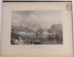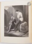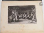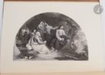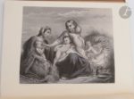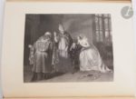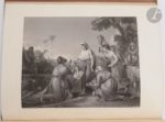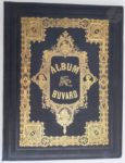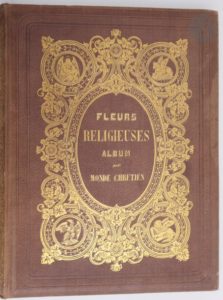 [ALBUMS ROMANTIQUES]. Ensemble de deux albums de l'époque romantique, en cartonnage d'éditeur : - Album buvard. Paris : H. Mandeville, [1851]. — In-folio, percaline à chevrons bleu foncé de l'éditeur, plats ornés de plaques dorées, dos lisse orné, tranches dorées. Rare album comprenant diverses pièces en vers, deux partitions gravées, six très belles gravures anglaises hors texte, onze feuillets blancs, et, à la fin une pochette à soufflet destinée à recueillir les notes diverses sur laquelle est collé un feuillet cartonné orné des jours de la semaine dans un bel encadrement dorés. Petites usures aux coiffes et aux coins. La partie du soufflet collée à la doublure du second plat est déchirée. Rousseurs. - Fleurs religieuses. Album du monde chrétien. Par E. de Limagne et Raymond-Hulin. Paris : H. Mandeville, [1859]. — In-folio, percaline marron clair de l'éditeur, plaque dorée sur les plats, dos lisse richement orné, tranches dorées. Bel album illustré de 24 remarquables planches gravées sur acier par certains des grands graveurs anglais d'après des tableaux de différents maîtres. Cartonnage insolé.