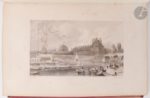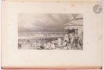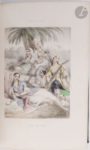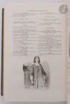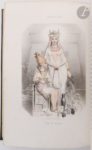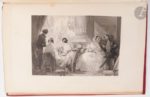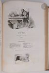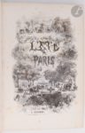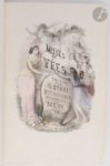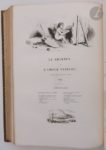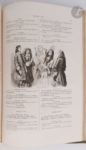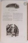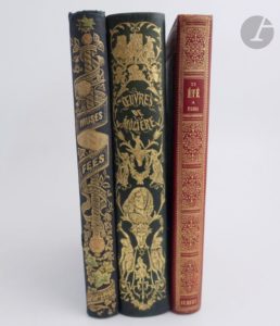 [CARTONNAGES ROMANTIQUES]. Ensemble de 3 ouvrages en cartonnage d'éditeur de l'époque romantique : - MÉRY (Joseph) - FOELIX - STAAL (Gustave). Muses et Fées. Histoire des femmes mythologiques. Paris : G. de Gonet, Martinon ; Leipsick : Ch. Twietemeyer, [1851]. — In-8, percaline bleue à chevron de l’éditeur, plaques dorées sur les plats et le dos, tranches dorées. Belle publication illustrée en premier tirage d’un frontispice et de 11 planches, lithographiés en couleurs par Gustave Staal. Exemplaire dans sa reliure d’éditeur ornée sur le premier plat et le dos de fers spécialement conçus pour ce livre. Quelques minimes usures aux coins et aux coiffes, sinon exemplaire très bien conservé. - MOLIÈRE. Œuvres… précédées d'une notice sur sa vie et ses œuvres par M. Sainte Beuve. Paris : J.-J. Dubochet, 1843. — In-8, chagrin vert foncé, plaque dorée sur les plats, représentant des personnages des pièces de Molière dans un décor d'arabesque, encadrant une lyre au centre, dos lisse orné d'une plaque dorée dans le même esprit, roulette dorée intérieure, tranches dorées Second tirage des nombreuses vignettes d'après Tony Johannot. Très bel exemplaire dans son superbe cartonnage en plein chagrin vert. Rares rousseurs, concentrées seulement sur quelques pages. La garde après le feuillet de table, est déchirée. - JANIN (Jules). L'Été à Paris. Paris : Curmer, [1843]. — In-8, chagrin rouge, large dentelle dorée en encadrement et motif doré losangé composé de feuillages et d’un médaillon muet au centre sur les plats, dos lisse richement orné, tranches dorées (reliure d’édition). Édition originale illustrée de dizaines de gravures sur bois dans le texte et de 18 planches gravées sur cuivre d'après Eugène Lami. Exemplaire très bien conservé. Rousseurs éparses et quelques feuillets décalés.