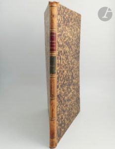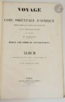 GUILLAIN (Charles). Voyage à la côte orientale d'Afrique exécuté pendant les années 1846, 1847 et 1848 par Le Brick Le Ducouëdic sous le commandement de M. Guillain capitaine de frégate. Publié par ordre du gouvernement. Paris : Arthus Bertrand, [1857]. — In-folio, demi-veau blond, dos lisse orné, tranches mouchetées (reliure de l'époque). Bel atlas comprenant 53 planches (sur 55), dont 10 de cartes et plans et 43 de vues et de types d'hommes et de femmes. Ces 43 planches sont lithographiées par Bayot, Ciceri, Jacottet, Sabatier et Vogt d'après des épreuves daguerriennes et les dessins de Caraguel et Bridet. Quarante-trois sont en deux tons et une, la 50, est en noir sur chine collé. Il manque les planches 11 et 49, devant respectivement représenter une « Vue de la partie est et de la forteresse de l'Île de Diou, prise du mouillage extérieur » et la « Carte des dépendances de Mombase ». Sans les volumes de texte. Frottements importants au dos, fentes aux charnières, coiffes arrachées, coins émoussés. Première garde blanche déchirée. Rousseurs et mouillures claires.