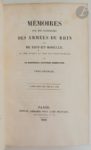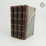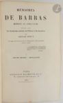 [MÉMOIRES DE LA RÉVOLUTION]. Ensembles de mémoires sur la Révolution française : - BARRAS (Paul-Jean-François-Nicolas). Mémoires de Barras membre du Directoire publiés avec Une Introduction générale, des Préfaces et des Appendices par George Duruy. Paris : Librairie Hachette et Cie, 1895-1896. — 4 volumes in-8, demi-toile bordeaux à coins à la bradel, dos lisse orné d'un fleuron doré, tête dorée, non rogné (reliure de l'époque). Édition originale des mémoires de l'une des figures les plus importantes de la Révolution et de l'Empire. Elle est illustrée de sept portraits hors texte et de trois fac-similés d'autographes hors texte. UN DES EXEMPLAIRES SUR PAPIER VÉLIN, CELUI-CI HORS COMMERCE, SPÉCIALEMENT IMPRIMÉ POUR RENÉ FOURET (1842-1924), libraire, éditeur, administrateur de la librairie Hachette. Bon exemplaire malgré quelques salissures et taches aux reliures. Quelques rousseurs éparses. - GOUVION SAINT-CYR (Laurent de). Mémoires sur les campagnes des armées du Rhin et de Rhin-et-Moselle, de 1792 jusqu'à la paix de Campo-Formio. Paris : Anselin, 1829. — 4 volumes in-8, demi-veau brun à coins, dos à nerfs orné, tranches mouchetées (reliure de l'époque). Édition originale de ces mémoires relatant les campagnes menées par Laurent de Gouvion Saint-Cyr de 1792 à 1797. Elle est illustrée de 15 cartes et plans hors texte et comprend plusieurs dizaines de tableaux, la plupart dépliants. Reliures très habilement restaurées. Rousseurs. Sans l'atlas. - MAURIN (Albert). Galerie historique de la Révolution française (1787 à 1789). Paris : Au bureau de la Société des travailleurs réunis, [1849]. — 5 volumes grand in-8, demi-chagrin rouge, dos à nerfs orné, tranches mouchetées (reliure du temps). Nouvelle édition illustrée de 63 portraits gravés hors texte. Bon exemplaire en reliure légèrement postérieure. Rousseurs.