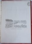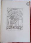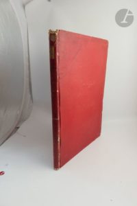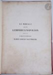 PERCIER (Charles) - FONTAINE (Pierre François Léonard). Description des cérémonies et des fêtes qui ont eu lieu pour le mariage de S. M. l'empereur Napoléon avec S. A. I. madame l'archiduchesse Marie-Louise d'Autriche. Paris : imprimerie de P. Didot l'aîné, 1810. — In-folio, cartonnage papier rouge à la bradel (reliure de l'époque). Édition originale de ce grand livre de fête. Il comprend 46 pages de texte imprimé sur papier vélin, suivies de 13 planches sur papier vergé, dont 2 plans et 11 vues, gravées au trait d'après les dessins des architectes Charles Percier et Pierre François Léonard Fontaine. Exemplaire en reliure de l'époque, bien complet de la table des planches à la fin. Reliure abîmée, nombreuses usures au dos et au bord des plats, avec manques. Rousseurs touchant les feuillets de texte. Les planches sont parfaitement conservées. Provenance : B. Grandmaison, avec cachet ex-libris sur le titre.