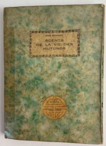 BOUCHOT (Jean). Scènes de la vie des Hutungs. Croquis des mœurs pékinoises. Préface d'Albert Nachbaur Directeur du Journal de Pékin. Pékin : Albert Nachbaur, 1926. — In-8, broché, deux étiquettes imprimées collées sur le premier plat de couverture. Troisième édition rare de l'un des livres les plus pittoresques édités sur la Chine et les chinois. Il est l'œuvre de l'archiviste et paléographe Jean Bouchot (1886-1932) qui, fort de son séjour de trois ans à Pékin dans les années 1920, dresse un portrait des plus instructifs et amusants de cette ville et de ses hutungs. Ce terme est défini ainsi dans l'introduction : « Méandre et labyrinthe, ruisseaux fangeux, trous à purin, pavée d'immondices et bitumée de crotte, telle est la hutung pékinoise » (p. b). Ainsi Bouchot nous dépeint la vie populaire chinoise à l'époque, telle qu'il l'a vue, « avec autant de précision, de sureté, d'exactitude, d'observation, dans une langue impeccable, élégante et riche » (p. c). L'édition est illustrée de nombreux croquis en rouge hors et dans le texte, ainsi que de deux grandes planches dépliantes en couleurs représentant respectivement la procession d'un mariage chinois et celle d'un enterrement. Couverture réparée à l'aide de scotch. Déchirure sans manque, restaurée, à la seconde planche dépliante. Quelques salissures à l'intérieur.