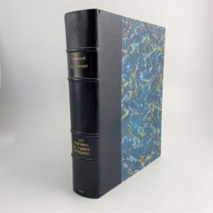 BUCQUOY (Eugène Louis). Les Uniformes de l'armée française. Terre. Mer. Air. Préface de M. le maréchal Pétain. Avant-propos du Général Mariaux. Paris : Les éditions militaires illustrées, 1935. — In-4, demi-chagrin bleu foncé, dos à nerfs, tête mouchetée, non rogné, couverture et dos conservés (Favre-Petit-Mermet). Édition originale tirée à 1000 exemplaires, illustrée de nombreuses compositions en noir dans le texte et 124 planches en couleurs sous serpente légendée, dont 15 de décorations, drapeaux, brassards, galons, etc., et 109 de costumes militaires d'après les compositions de Maurice TOUSSAINT. Préfacé par le Maréchal Pétain et composé par le commandant Eugène Louis Bucquoy, fondateur de la « Société d'étude des uniformes de France », il s'attache à décrire de façon détaillée tous les uniformes de l'armée française à l'époque de la publication du livre, c'est-à-dire dans l'entre-deux-guerres, y compris ceux des troupes coloniales. UN DES 30 PREMIERS EXEMPLAIRES NUMÉROTÉS SUR JAPON IMPÉRIAL, parfaitement conservé.
