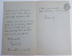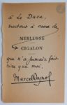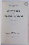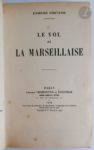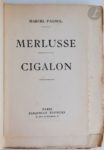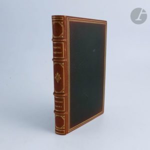 [LITTÉRATURE]. Ensemble de cinq éditions originales des XIXe et XXe siècles : - GIRAUDOUX (Jean). Aventures de Jérôme Bardini. Roman. Paris : Émile-Paul frères, 1930. — In-8, maroquin brun foncé, dos lisse orné, tête dorée, non rogné, couverture et dos conservés (Lefranc). Édition originale. Un des 100 exemplaires sur vergé de Hollande, celui-ci non numéroté. - PAGNOL (Marcel). Merlusse. Cigalon. Paris : Fasquelle, 1936. — In-8, broché. Édition originale. Un des 50 exemplaires numérotés sur Hollande Van Gelder Zonen, enrichi d'un feuillet de titre provenant d'un exemplaire ordinaire portant une belle dédicace autographe signée de Pagnol à Lo Duca. Couverture insolée. Rousseurs. - PRÉVOST (Marcel). Cousine Laura. Mœurs de théâtre. Paris : Alphonse Lemerre, 1890. — In-18, maroquin vert foncé, triple filet doré en encadrement sur les plats, dos à nerfs orné, dentelle dorée intérieur, tranches dorées sur témoins, couverture conservée (Marius Michel). Édition originale. Un des 13 exemplaires sur papier de Chine, enrichi d'une lettre autographe signée de l'auteur, deux pages un quart in-12. Dos et bords des plats passés. Rousseurs sur les gardes. - ROSTAND (Edmond). Le Vol de la Marseillaise. Paris : Charpentier et Fasquelle, 1919. — In-8, demi-parchemin blanc, dos lisse, tête dorée, non rogné, couverture conservée (reliure du temps). Édition originale. Précieux exemplaire sur japon, nominatif, spécialement imprimé pour le fils de l'auteur, Maurice Rostand. Exemplaire en reliure postérieure. Couverture salie, rousseurs éparses.