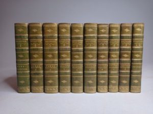 BRANTÔME. Mémoires de Messire Pierre du Bourdeille, Seigneur de Brantome. Leyde, Jean Sambix le jeune, 1665-1666-1722. 10 volumes petit in-12, maroquin vert à long grain, filets dorés et roulette à froid en encadrement avec fleuron d'angle, dos orné, roulette intérieure, tranches dorées (Reliure du milieu du XIXe siècle). Collection complète elzévirienne des œuvres de Brantôme (cf. Willems, n°1369). De la bibliothèque du comte Maurice de Périgny. Chiffre couronné presque effacé en bas de la page de titre du tome II. Quelques légères rousseurs, dos un peu passé, traces d'oxydation sur les gardes.