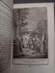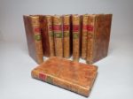CERVANTÈS (Miguel de). Histoire de l'admirable Don Quichotte de La Manche. - Nouvelles. Amsterdam & Leipzig, Arkstée & Merkus, 1768. Ensemble 8 volumes in-12, veau marbré, triple filet doré, dos orné, roulette intérieure, tranches dorées (Reliure de l'époque). Portrait de l'auteur, un faux-titre gravé et 43 (31 + 12) figures gravées sur cuivre. Des rousseurs claires. Une coiffe restaurée, frottements à la reliure.