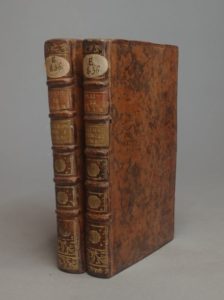 [COURCHETET D'ESNANS]. Histoire des négociations, et du traité de paix des Pyrénées. Amsterdam, Guy ; Et se trouve à Paris, Briasson, 1750. 2 volumes in-12, veau marbré, filet à froid, dos orné, pièces de titre rouge et de tomaison citron, fer à la toile d'araignée répété, étiquette de cote ancienne en tête, tranches rouges (Reliure de l'époque). Édition originale. Le traité des Pyrénées fut signé le 7 novembre 1659 sur l'île des Faisans et mit fin à la guerre entre la France et l'Espagne commencée en 1635 dans la cadre de la Guerre de Trente Ans. La France récupéra à cette occasion le comté du Roussillon et une partie de la Cerdagne, et les monts Pyrénées furent établis comme étant la frontière entre les deux royaumes (article XLII). AGREABLE EXEMPLAIRE PROVENANT DE LA BIBLIOTHEQUE DE LOUIS-FRANÇOIS DE MONTEYNARD (1713-1791), secrétaire d'État à la guerre de 1771 à 1774, avec son ex-libris armorié gravé.
