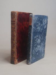 CURIOSA. - Ensemble 2 ouvrages. - PRUSSE GALANTE (La) ou Voyage d'une jeune Français à Berlin. Coïtopolis, Berlin et Paris, An 1801. In-18, cartonnage de papier bleu de l'époque. Rare roman érotique mis à l'index en 1825, orné d'un frontispice libre gravé sur cuivre (Gay-Lemonnyer, III, col. 882). Légères rousseurs. Reliure usagée. - [GODARD D'AUCOURT]. Thémidore. La Haye, 1760. 2 parties en un volume in-12, basane de l'époque. Roman libertin cité par Gay-Lemonnyer (III, col. 1209) et Pia (col. 1419-1420) : "Rozette savoit la carte de mon voyage ; elle m'avoit vu mettre le doigt sur l'endroit où je prétendois arriver, & avoit résolu de me donner quelque distraction en chemin. Sans m'avertir, elle avoit fait venir une de ses bonnes amies... Avez-vous vu, Marquis, un tableau de Coypel, dans lequel une Nymphe, couchée sur un lit de fleurs auprès de Jupiter, se plaît à manier son foudre ? Nous étions une copie de ce chef-d'œuvre". Reliure usagée.