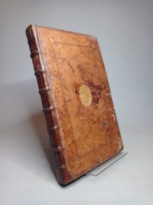 FLAVIUS JOSÈPHE. Les Sept livres de la guerre et captivité des Juifz, traduits de grec et mis en françoys par N. de Herberay. Paris, Jean Longis, 1557. In-folio, veau fauve, double encadrement de trois filets à froid, médaillon central à motifs d'entrelacs sur fond azuré, petit fleuron doré aux angles, dos orné, pièce de titre rouge postérieure (Reliure de l'époque). Mortimer, n°331. Seconde édition de la traduction, illustrée de nombreuses vignettes sur bois dans le texte. Cachet humide sur le titre du Petit séminaire des jésuites de Troyes. Ex-libris manuscrits anciens. Manque la première garde. Des rousseurs et mouillures à quelques feuillets. Taches et restaurations à la reliure (charnière supérieure, coins, un mors, coiffe de tête et une partie inférieure du dos).