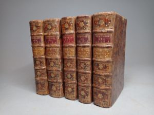 FLAVIUS JOSÈPHE. Histoire des Juifs. Traduite sur l'original grec revû sur divers manuscrits, par M. Arnauld d'Andilly. Bruxelles, Fricx, 1701-1703. 5 volumes in-12, veau marbré, dos orné, tranches mouchetées de rouge (Reliure de l'époque). Un frontispice gravé par Berterham d'après Van Orley, et nombreuses gravures sur cuivre à mi-page dans le texte. Reliure usagée.