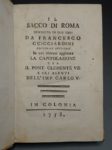 GUICCIARDINI (Francesco). Il Sacco di Roma descritto in due libri. Edizione seconda in cui trovasi aggiunta la Capitolazione tra il Pont. Clemente VII et gli agenti dell'Imp. Carlo V. Cologne, s.n., 1758. In-8, vélin rigide, pièce de titre orangé au dos (Reliure de l'époque). Édition en partie originale de cette histoire du sac de Rome (1527) par les troupes de Charles Quint, augmentée du récit de la capitulation du pape Clément VII le 6 juin 1527. Agréable exemplaire en vélin de l'époque.