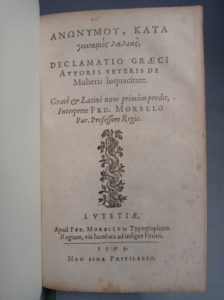 IMPRESSION EN GREC. - [LIBANIUS]. [En grec] : Declamatio graeci Autoris veteris de Mulieris …